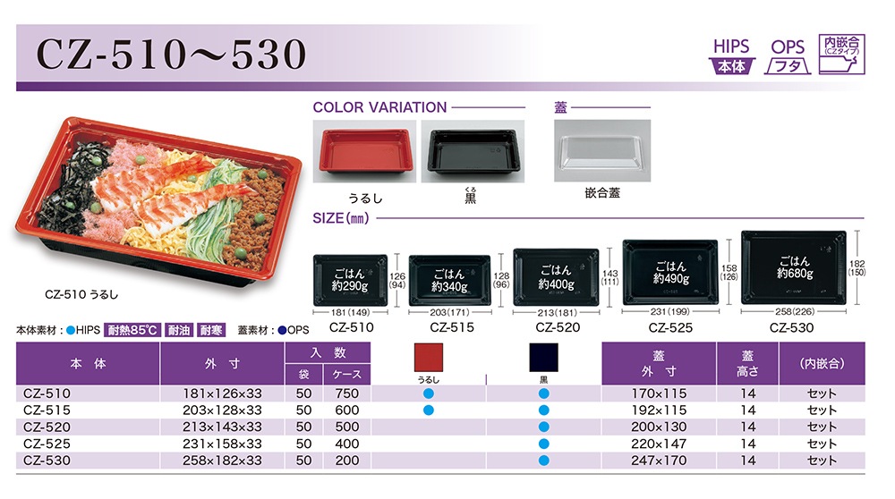 シーピー化成 米飯容器 本体・蓋セット CZー510 うるし 50枚入×15袋(750枚)/箱