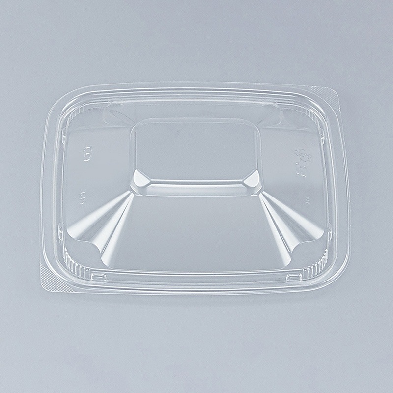 丼容器「BFランチ角385」用の内嵌合蓋です。高さがあり、ボリューム感を訴求するメニューに適します。蓋天面の突起が本体底面のくぼみにフィットする形状で、積み重ねが安定します。●電子レンジ使用不可●耐熱温度:80℃
