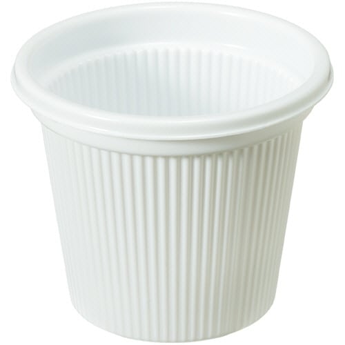 ソースやドレッシング容器として便利です。試飲、試食などにもご使用いただいています。 テイクアウトにも最適です! ●寸法:約直径43×高さ35mm●質量:約1.1g●容量:約24ml●耐熱温度:約90℃●生産国:日本製●電子レンジ使用不可※フタは別売りです。