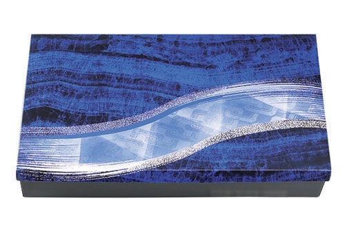 高級会席にふさわしい、上品で優雅な趣を醸しだす紙ボックス。本体・蓋セパレートタイプ。プレス加工した、超光沢感のある高級な柄。風や川の流れを感じさせる風情のある印象です。中仕切「料亭中仕切140ー100ーA古伊万里」は別売です。●電子レンジ使用不可●オーブン使用不可