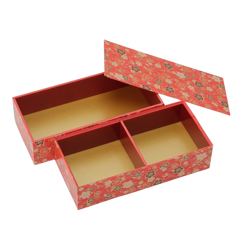 ハナビシ柄の美しさを纏った「2段折ハナビシ柄しゃくり蓋」は、飲食店様にぴったりな弁当容器です。この優雅なデザインは、料理を引き立て、お客様を感動させること間違いなし。色鮮やかな日本の伝統模様が、テーブルを華やかに彩ります。容量も十分で、二段構造になっているため、主菜と副菜をきれいに分けて盛り付けることができます。折箱の形状は機能的でありながら、持ち運びにも便利なサイズ感が嬉しいポイントです。お料理のおいしさを引き立てるだけでなく、見た目でも楽しませる一品です。このハナビシ柄の折箱は、特別な日の利用だけでなく、テイクアウト容器として幅広くご使用いただけます。おしゃれな仕上がりで、特別な体験を提供する「2段折ハナビシ柄しゃくり蓋」。お客様に喜ばれること間違いなしです!赤花菱はお祝い事に最適な柄となります。下段は中央に仕切りが入っています。ぜひ、その魅力を実際にお試しください。●本製品は使い捨てタイプです。複数回の使用はお控えください。