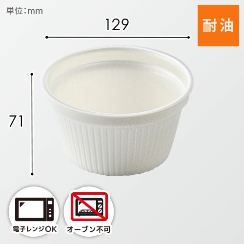 別売の蓋と共に耐熱タイプの深型形状容器です。容器のままレンジで温めることができます。本体の材質は断熱性に優れた素材を使用しているので、中身が熱くても素手で持つことができます。スープ類のテイクアウトにおすすめです。「T-ドリスカップ129内嵌合C字蓋」「T-ドリスカップ129内嵌合蓋R」「T-ドリスカップ129外嵌合蓋」が適合します。●電子レンジ使用可●オーブン使用不可●耐油性:あり●耐熱温度:110℃●容量:約420cc