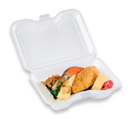 蓋がワンタッチで閉まる発泡タイプのランチBOX!ケータリングやランチボックスにおすすめの食品容器です。●電子レンジ使用不可●オーブン使用不可●耐油性:なし●耐熱温度:85℃●ごはんの容量:約250g●容器のみの販売です。