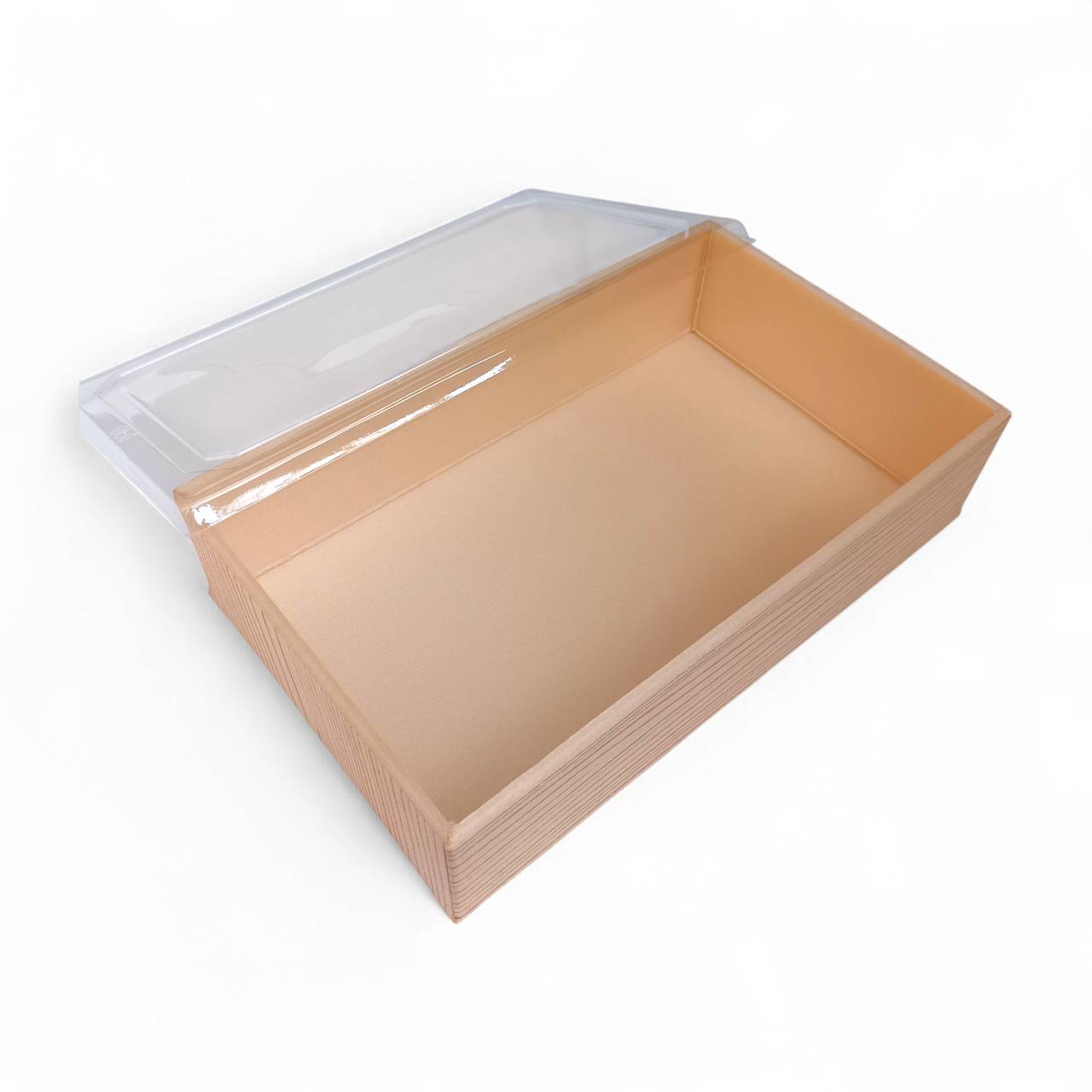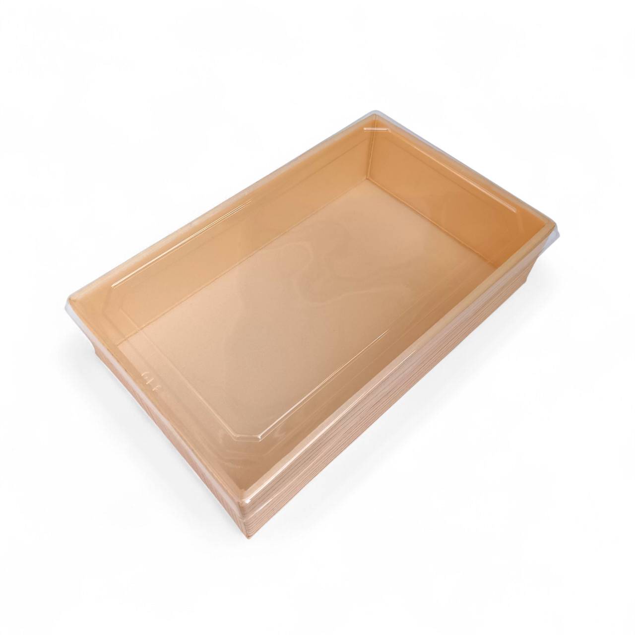 新鮮な刺身を美しく保つために設計された「刺身中 透明蓋」。飲食店様用に特化したこの折箱は、プロフェッショナルなプレゼンテーションを実現し、顧客の目を引きます。美しい木目模様が料理を引き立て、刺身の色合いや質感を際立たせ、食欲をそそります。