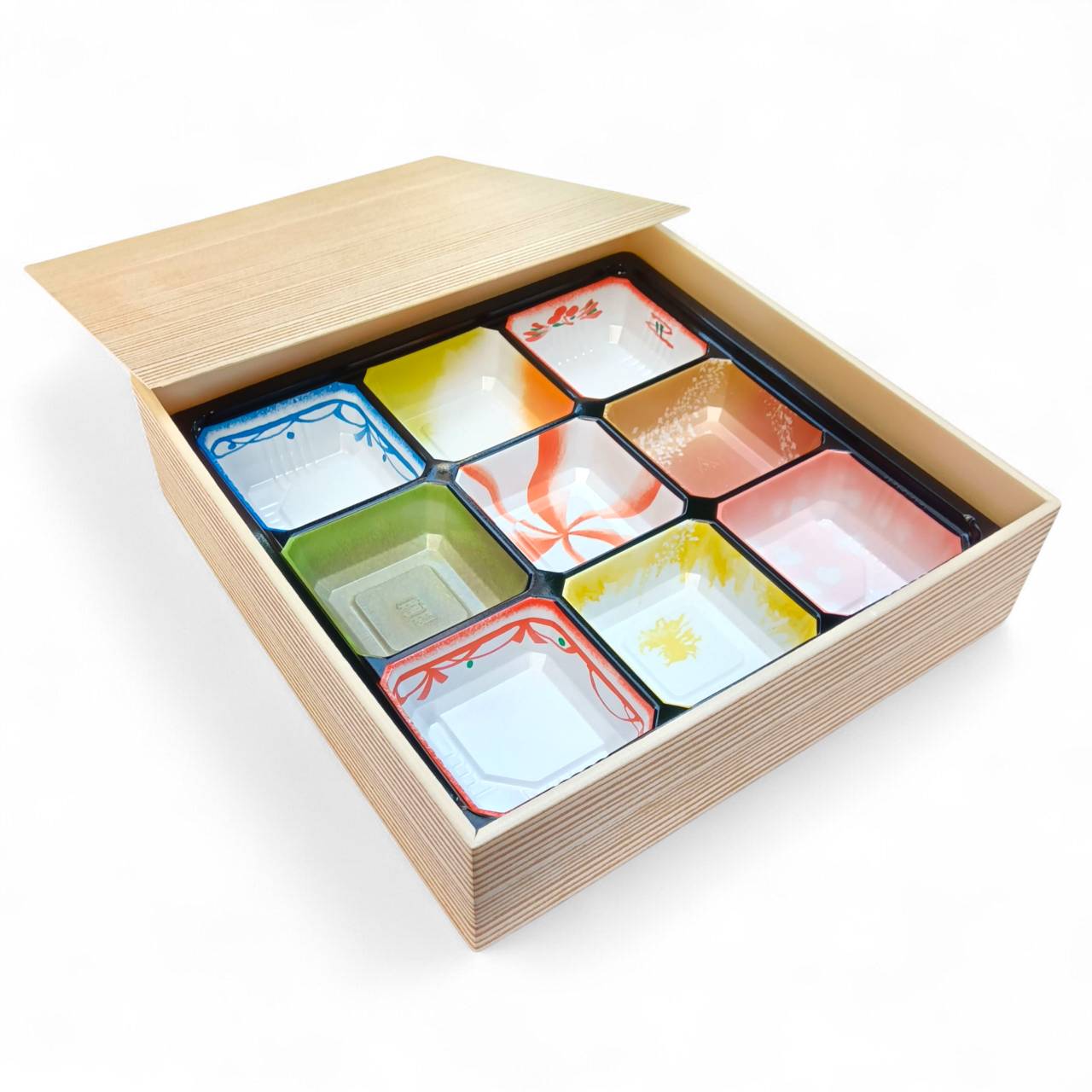 高級弁当を引き立てる「DEF9つ仕切 しゃくり蓋 T-70-Eトレー入り」が登場です。木目柄のデザインは、どんな飲食店様でも格調高い雰囲気を演出します。伝統的な和の美しさを感じさせるこの折箱は、大切な料理を引き立て、食卓を華やかに彩ります。特別な日のご利用だけでなく、会議用や日常使いにもぴったり。お料理を美しく盛り付け、高級感あふれるお弁当を提供できます。