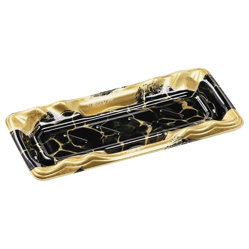 低握り5貫、または太巻1本向け。食材に躍動感を持たせる波型の寿司容器です。外嵌合蓋は別売です。
