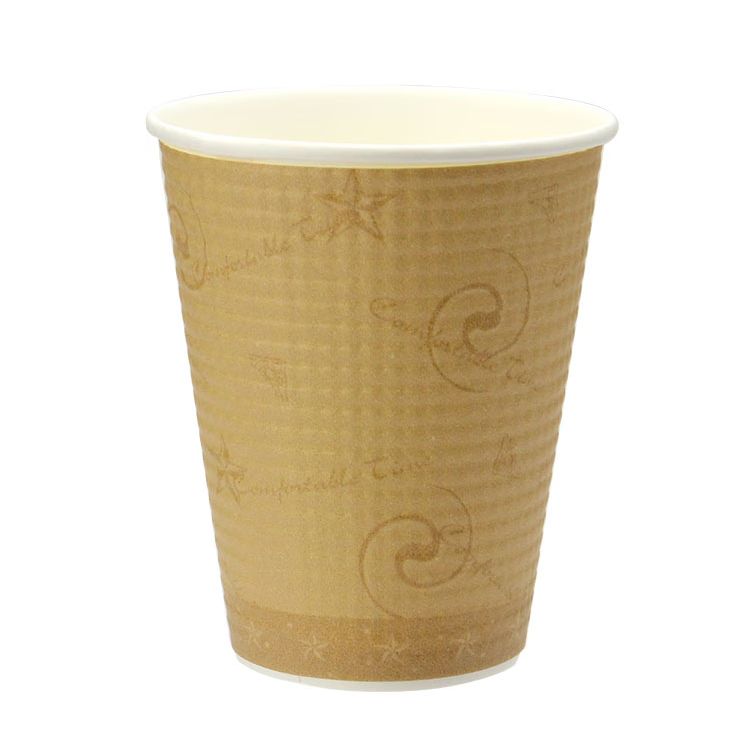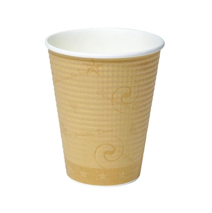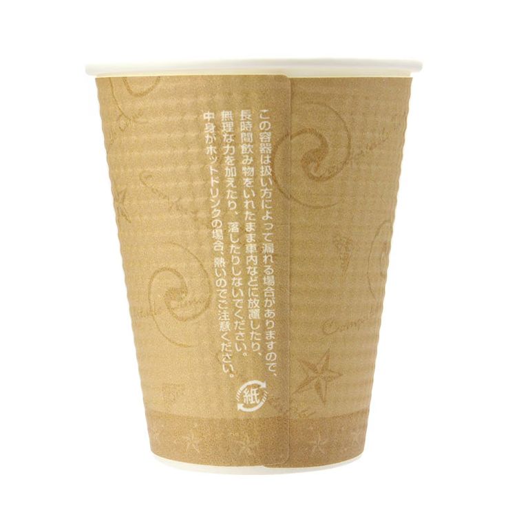 断熱性エンボス紙コップです。エンボス加工した紙製スリープを装着し、エアー層を形成。すべりにくく断熱性に優れた新感覚の紙コップです。蓋は別売りです。●容量:260ml